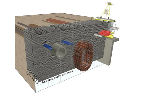 E’ una tecnologia che consente di rivelare, in modo non distruttivo e non invasivo, la presenza e la posizione di oggetti presenti nel sottosuolo, fino ad una profondità di diversi metri, utilizzando il fenomeno della riflessione delle onde elettromagnetiche a particolari frequenze. Il sistema è costituito da un’ unità di controllo e di acquisizione dei dati, e da una o più antenne, e permette di acquisire, analizzare e interpretare i dati e di restituire elaborati grafici (cartacei o elettronici) bi/tri dimensionali, in pianta o in sezione. A seconda del numero di antenne e della frequenza utilizzata per l’ introspezione, la tecnica permette di rilevare, accuratamente, la posizione e la dimensione degli oggetti, presenti nel sottosuolo. L’ uso di tale tecnologia è propedeutico all’ impiego delle tecniche di posa no-dig che comportano perforazioni o scavi ridotti; oltre ad essere utile per la progettazione di reti tecnologiche, essa permette di effettuare analisi dei profili stratigrafici, indagini archeologiche e di ingegneria civile e ambientale. Il suo impiego è condizionato principalmente dalle caratteristiche geologiche del terreno (la presenza di acqua, infatti, attenua la capacità di penetrazione dell’ onda elettromagnetica) e dal tipo di oggetti presenti nel sottosuolo (per esempio la presenza di maglie metalliche).
